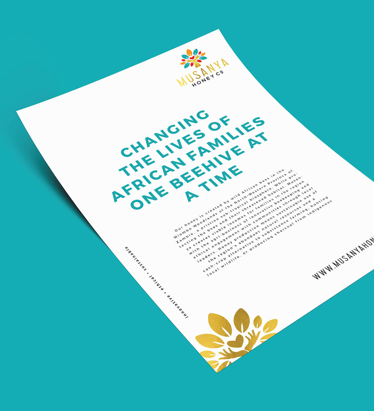 Strong, simple colours to define Musanya brand identity, reflecting Africa’s vibrancy and empowering lives through sustainable beekeeping.